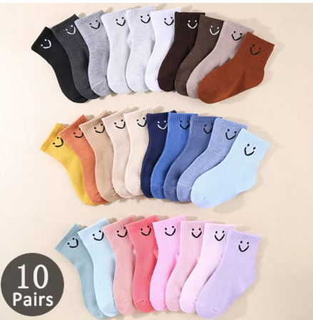 מארז של 10 יחידות של גרביים במגוון צבעים.