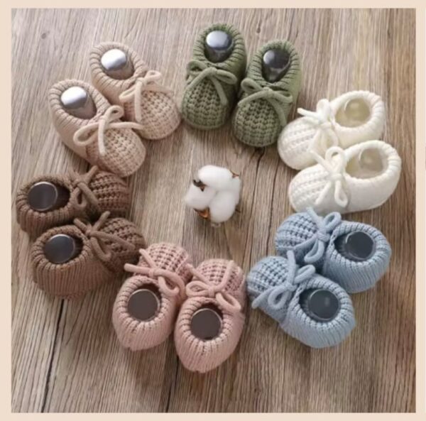 נעליים סריג לתינוקות מגיל יום. הם גם מתוקות ברמה וגם יחסית מחממות.