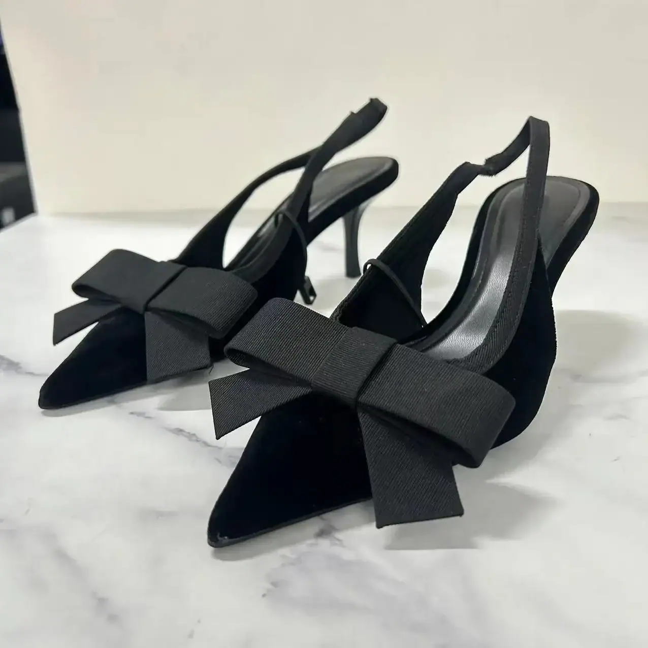 נעלי עקב יפות עם שילוב של קטיפה. מתאימות לשבת שבת.