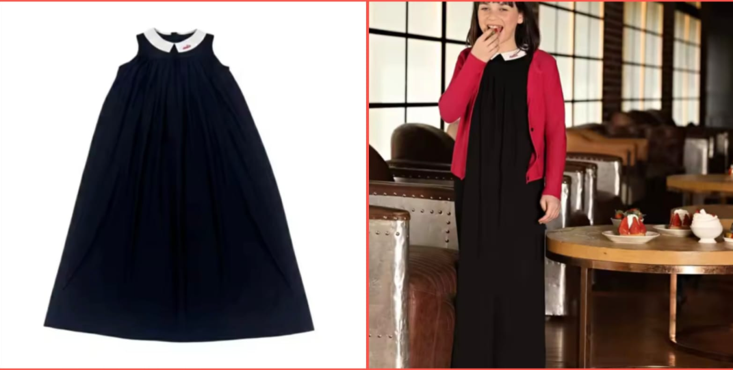 סרפן שחור עם צווארון עגול לבן- מתאים לשבת שבת.